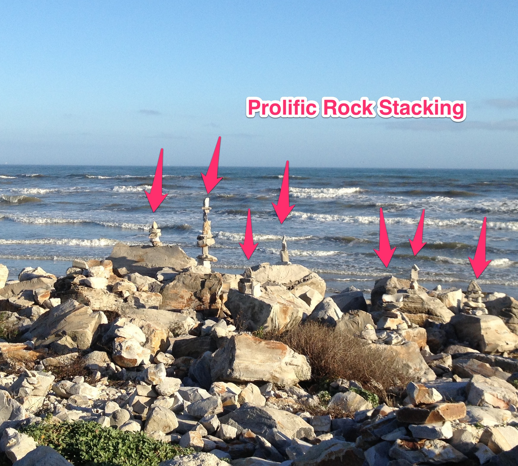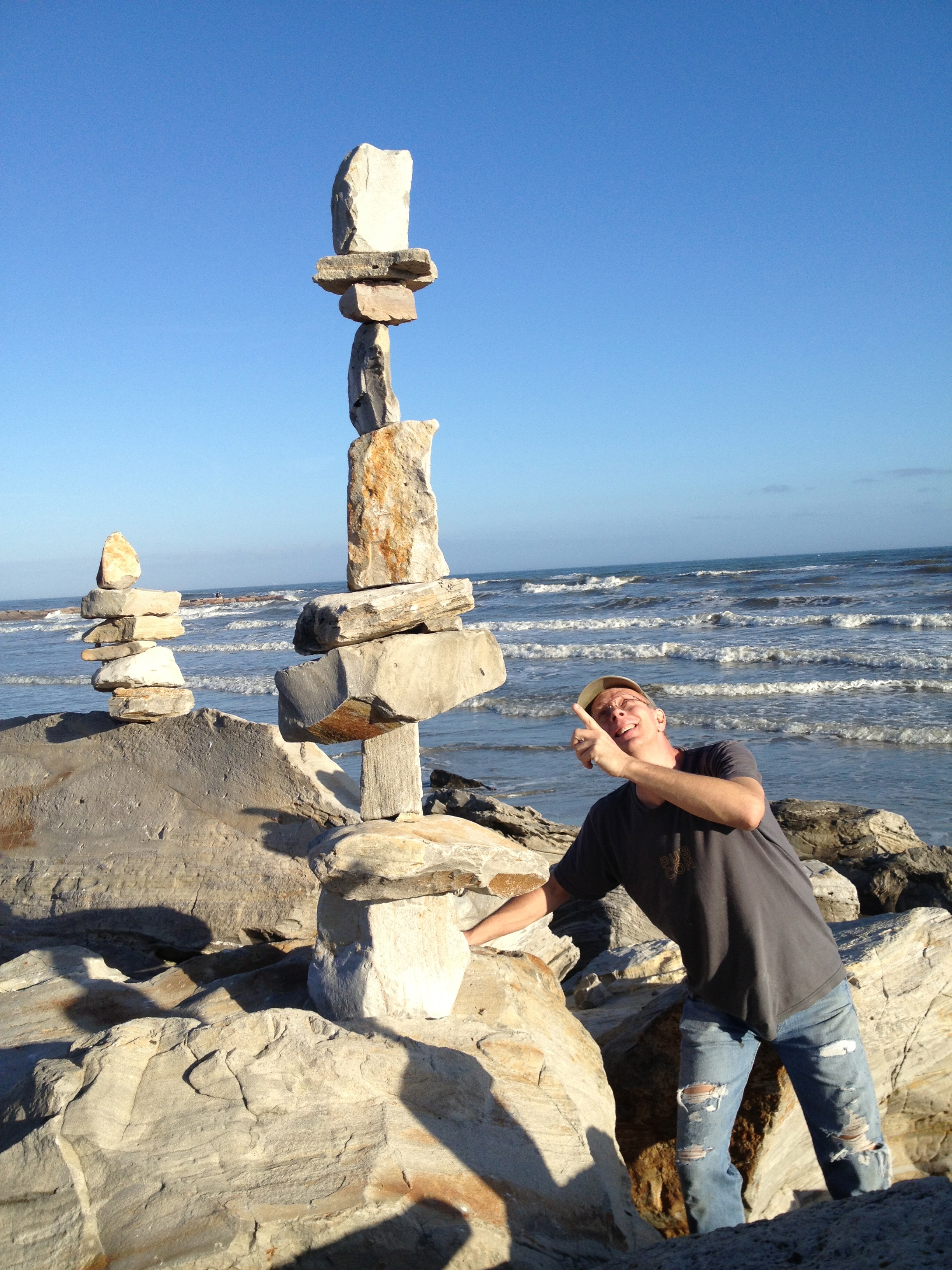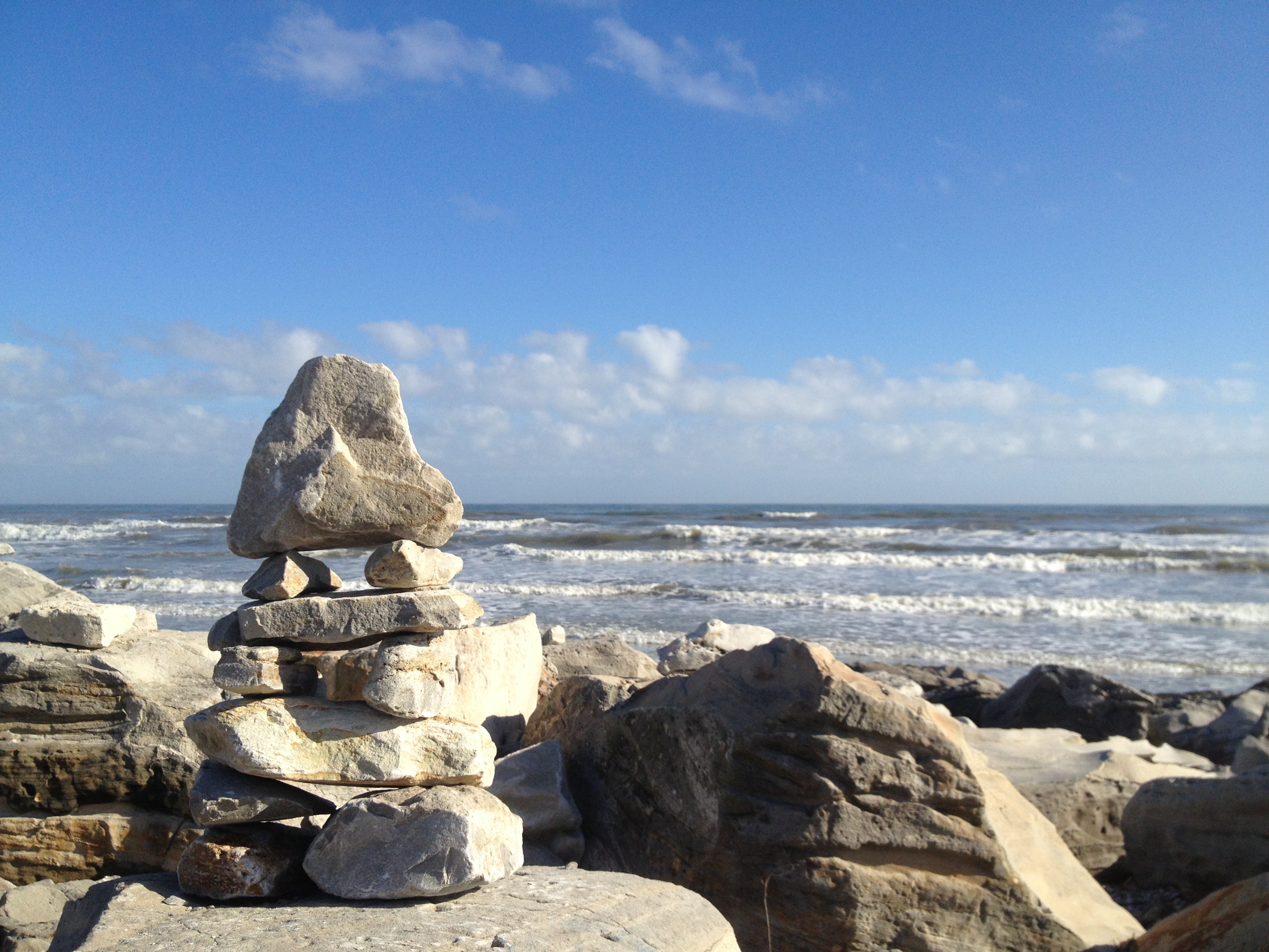 So we took a quick trip to Galveston today. (we go at least once a month and have for years – it’s my thing) Today we went to the seawall to stack rocks. It was a beautiful day. Rodney was in a rock stacking mood, prolific, if you will – 2 of these are me and my daughter’s, the rest are Rodney’s works of art with a healthy assist by my son. (someone’s gotta haul rocks)